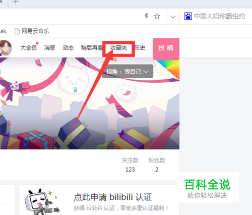 首先登陆我们的bilibili账号,然后点击右上方的收藏夹。