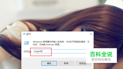 首先,请大家在Win10系统桌面上按下Windows徽标键+R键,在弹出的运行菜单命令窗口中输入“ regedit”关键字,打开注册表编辑器页面。
