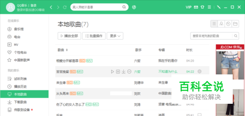 9、返回到qq音乐主界面,可在本地歌曲列表中,可看到插入的歌曲列表。如图所示;