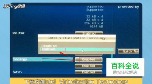 点击上方的Advanced选项卡,展开CPU Configuration,下拉找到Intel Virtualization Technology,将后面的Disabled修改成Enabled。