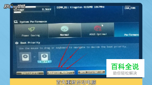 首先重新启动电脑,不停的按Del键,让操作系统进入BIOS,选择Advanced Mode(FT),提示Enter Advanced Mode,选择OK。