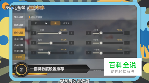 相对的红点、2、4、8倍镜可以调到80%,开火镜头的灵敏度,不开镜调为100%。