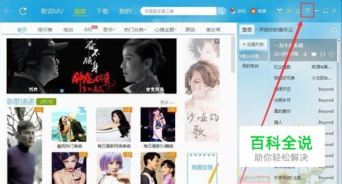 首先我们打开酷我音乐,然后点击酷我音乐软件界面右上角的到三角符号 如图