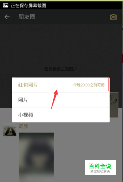 返回朋友圈可以看到你刚才发送的图片红包,是带有阴影的照片。