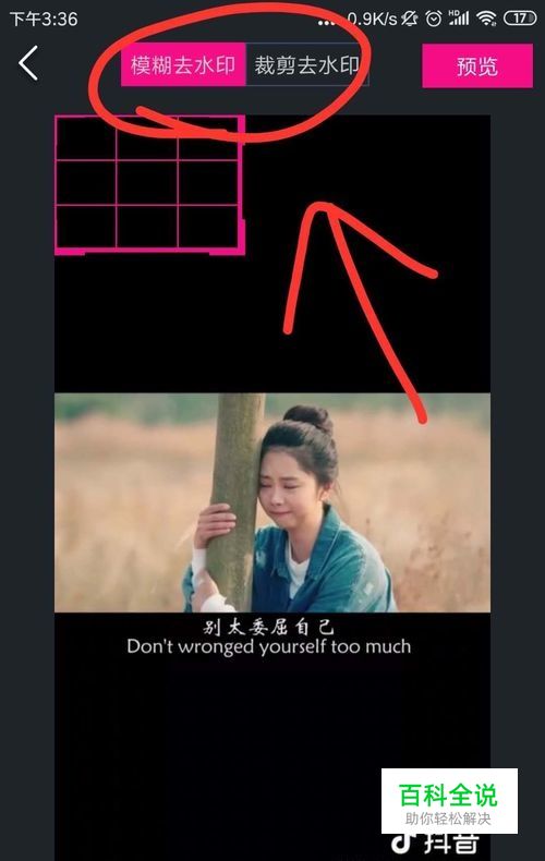 点击【裁剪去水印】,拖动方框覆盖要保留的视频,没有被红框覆盖的部分会被裁剪掉,这样水印就裁剪掉了。