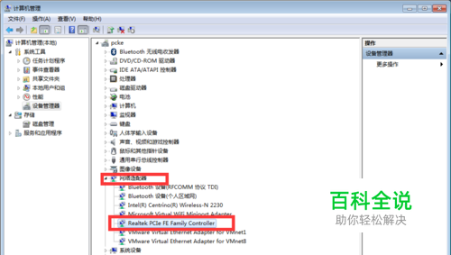 在设备管理器中的“网络适配器”找到自己的网卡。每台电脑可能不一样。