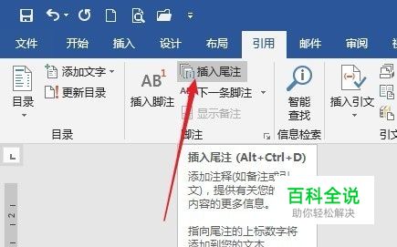 打开Word文档,光标置于需要插入尾注的文字后方,点击“引用”—“插入尾注”。