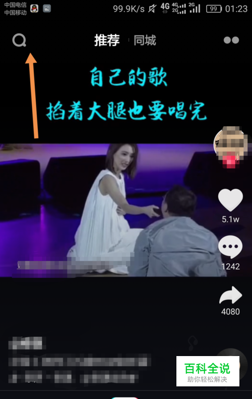 首先,我们进入抖音,然后我们点击图中所示的搜索选项