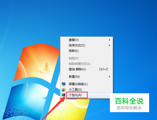 如果想把任务栏上的显示窗口给改成小窗口模式的缩略图,可以右键电脑桌面任何一处空白的地方,然后点击“个性化” 如图
