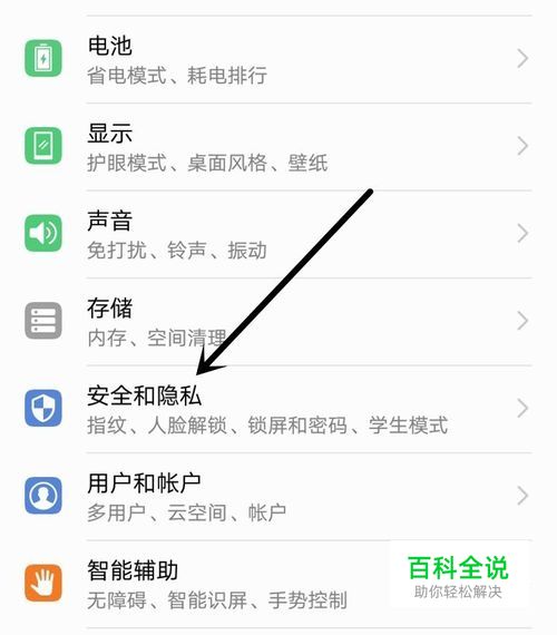 开启后,选择“安全和隐私”选项,如图所示;