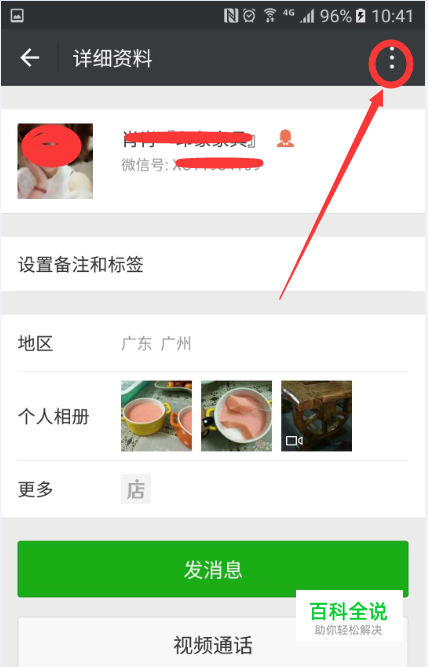 进入通讯录,找到她/他的微信,然后点击右上角的“...”