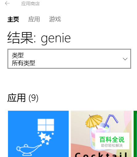 win10都含有自带的应用商店,在应用商店里查询“Genie”选择 Tile Genie并标注有“免费”。选择下载。