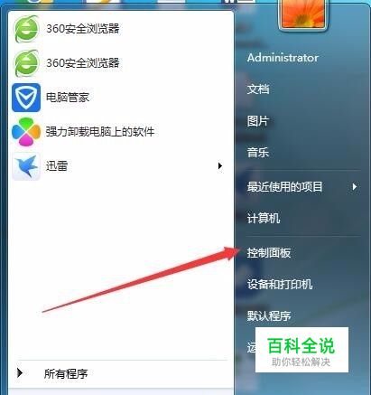 我们按提示,点击开始菜单,然后找到“控制面板”菜单项,点击打开控制面板