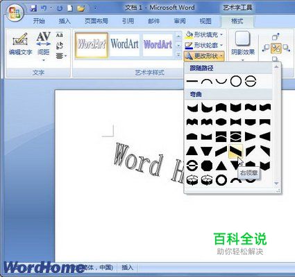在Word2007文档中设置艺术字形状
