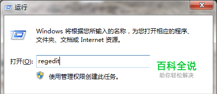 按Win+R键,打开运行窗口,输入regedit,回车进入注册表编辑器;