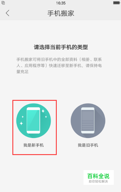 OPPO新手机: 在OPPO新手机选择当前手机类型为“我是新手机”,再选择旧手机类型为“从安卓手机导入”。