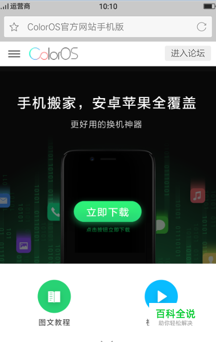 当新手机是OPPO手机,旧手机是安卓手机。 旧手机(安卓手机)在浏览器上登录ColorOS官网点击下载“备份与恢复”