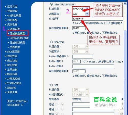 万能中继连接: 会提示设设置安全模式:选择WPA,认证模式:WPA2-个人,WPA算法:AES,关键一步:密码:输入原来路由器的无线密码,记得不要填错了哦,输入错误是中继不上的。