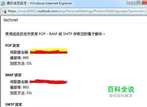 透過查詢 Office 365 的 Outlook Web App 的 POP、IMAP 或 SMTP 資訊,然後在 Outlook Express 進行設定。