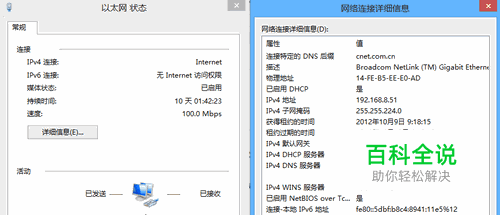 第二步:其中的“以太网”就是以前的“本地连接”,没有实质变化只是换了个名称。点击“以太网”我们可以像Win7一样查看网络状态,这里弹出的窗口与Win7无异,包含了“详细信息”和“属性”等常规选项。