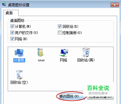 在 桌面选项卡上,选中要更改的图标,点 更改图标。