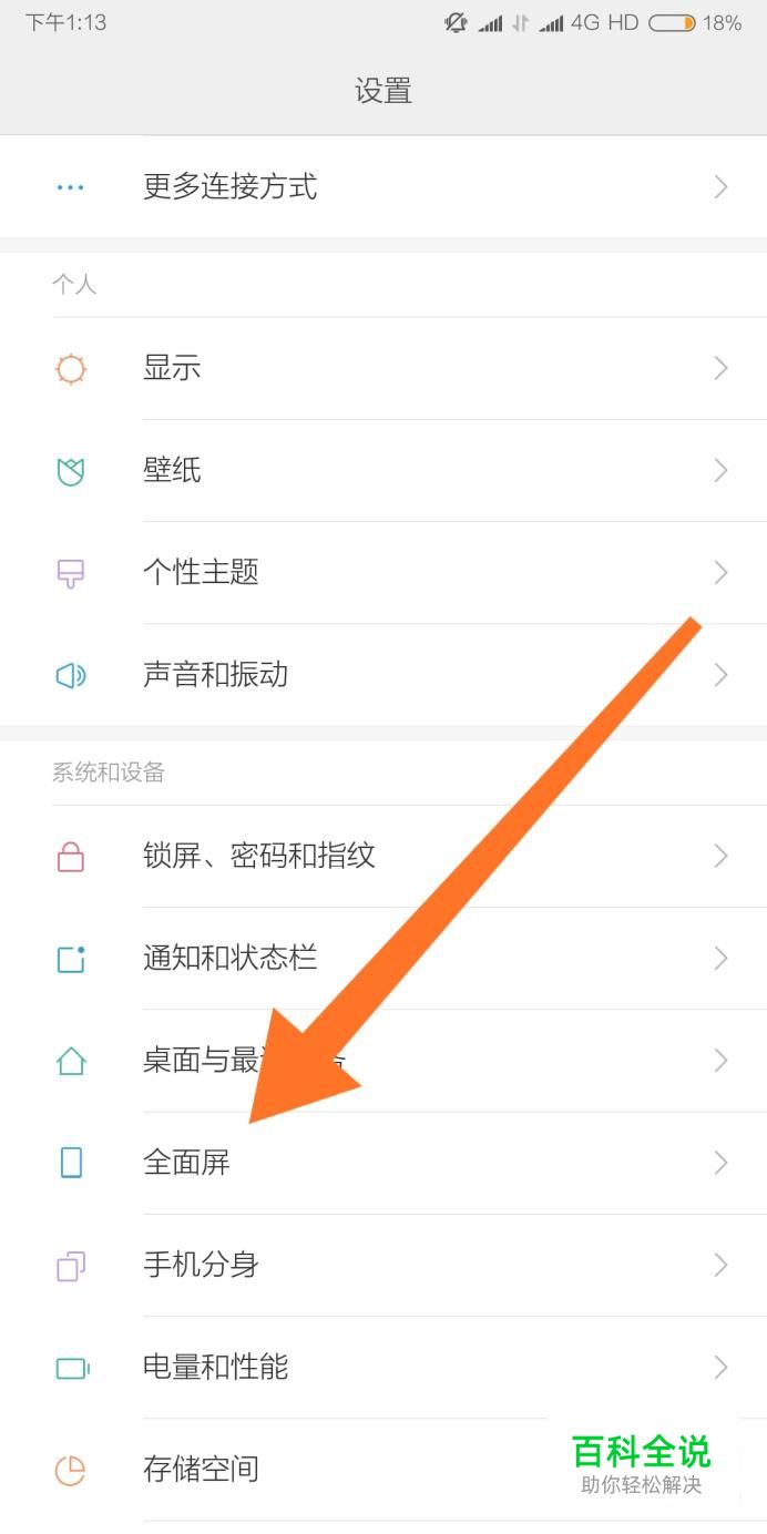 然后点击进入“全面屏”设置选项。