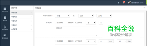 考勤设置 可设置考勤的月度范围,以及针对不同的工时制度为员工设置签到和签退提醒。