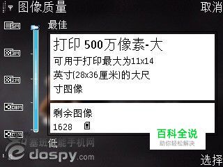 选择正确的像素(打印尺寸) 镜头像素:500像素的镜头是什么意思,像素指的是数码相机的分辨率,是衡量一部数码相机性能的重要指标。它是由相机里的光电传感器上的光敏元件数目所决定的,一个光敏元件就对应一个像素,像素越大,说明光敏元件越多,相应的成本就越大,95是500万像素,完全可以满足日常生活拍照的需要,此点大家尽可放心,不是特殊场合(足球场地远距离抓拍射门瞬间),特殊环境(如深夜拍星空),完全不需要使用专业的照相器材。 打印像素(打印尺寸、成像尺寸):这个就是我们通常在电脑上看见的照片大小,比如1600*1200等,我们的95相机拍照时候可以选择打印尺寸,500万就是2592*1944的打印尺寸,200万就是1600*1200,并不是说200万拍出来的效果就没有500万的好,这个要根据你的相片使用的需要,如果就是生活照,200万打印尺寸(1600*1200)就足够了,用来冲印,放大完全没有问题,更大的尺寸用来做图,比如喷绘、写真、海报等等,这里有一点需要明确的是,不论你选择哪种尺寸,照片都是用具有500万像素的镜头拍下来的,并不是说你选了200万模式,镜头工作的时候会变成200万镜头,机器工作的时候还是500万的镜头在工作,只是成像的光敏元件数少了一些,这一点也是很多朋友的误区,所以生活照一般选择200万就可以了,因为500万的照片成像图片大,处理时间长,对拍摄的技术和要求都更高,此点大家务必记得,根据需要选择拍摄的尺寸。