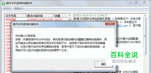 打开“楼月手机短信恢复软件”,使用本软件打开刚导出的mmssms.db文件,然后再点击“文件”“恢复已删除短信”,然后所有已删除的短信就被成功恢复了。