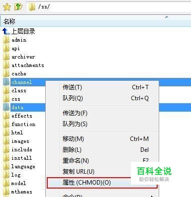 只需将所需修改文件权限的目录属性修改为为777即可,具体方法如下: 用 FTP 工具打开虚拟主机上的文件,选中需要修改的文件夹和文件 => 右键 => 属性