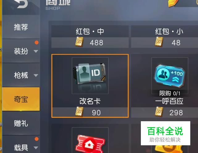 如果你已经有了一个你不怎么想要的名字的话,那么你需要先去商城里去购买改名卡,直接打开商城,然后找到奇宝就可以了。