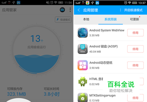 2、禁用系统软件 很多预装软件会自动联网,会在你不知道的情况下,耗费流量,而且占用存储空间、内存,导致手机非常卡。第三方应用可以轻松卸载,那系统的自带应用呢?需要借助第三方软件如应用管家,root权限,禁用系统软件,可以让软件无法运行,桌面也不会再显示图标。虽然无法彻底删除,但是也能释放存储空间,手机运行速度也会更快。