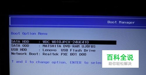 在确定完成第一步的情况下,按F10保存退出从启后按住FN+F12进入引导界面,选择已经认出的U盘回车即可如图: