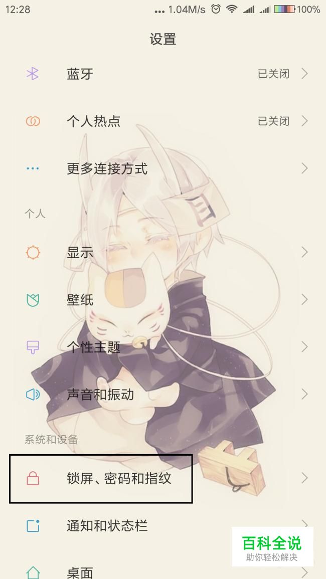 在“系统和设备”下找到“锁屏、密码和指纹”选择栏
