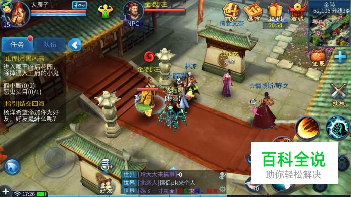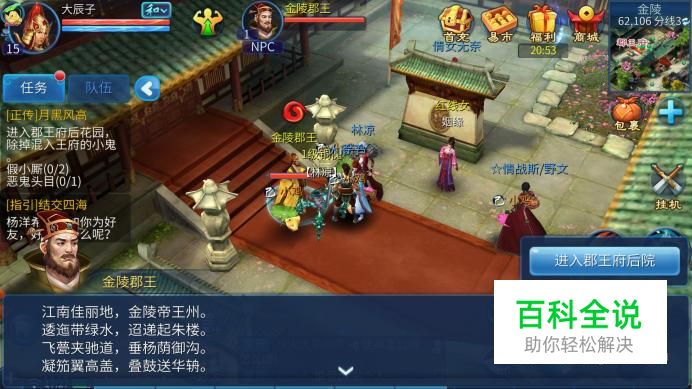 自动寻路到任务NPC,对话弹框点击“进入郡王府后院”