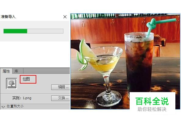 导入位图到舞台中,会弹出【准备导入】对话框,调整位图在场景舞台的大小位置,如图所示,执行【文件】->【另存为】,保存文件。