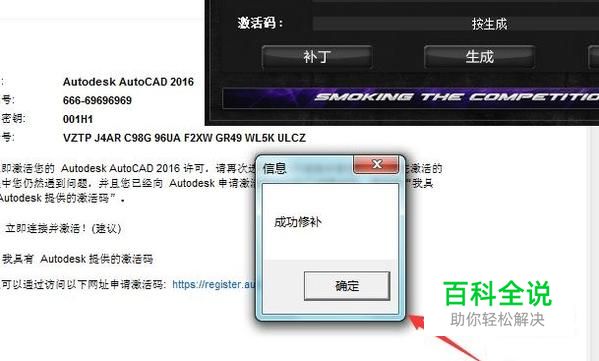 输入好请求码后,点击注册机里的生成选项,弹出成功修补提示对话框,如图所示: