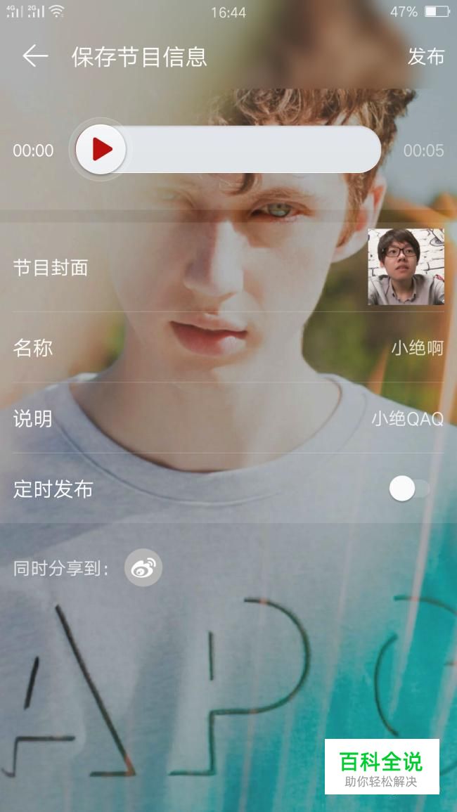 然后保存信息节目的时候,要选择节目封面,并填写名称还有说明,填完之后就可以保存了