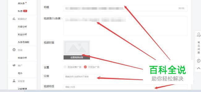 视频上传后,依次填写视频的名称,视频简介,分类,标签等。