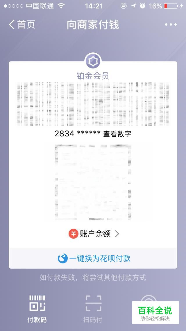 设置成功后即可使用花呗进行付款。付款时向商家出示付款码,对方可扫码收钱。