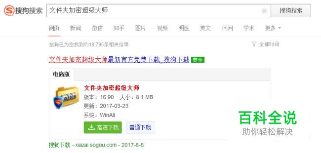 首先搜狗搜索“文件夹加密超级大师”并下载