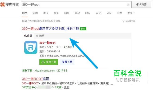 打开搜狗搜索,输入360一键root关键字。