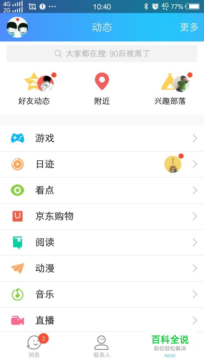 点击QQ右下角的动态,然后点击左上角的好友动态进入空间。
