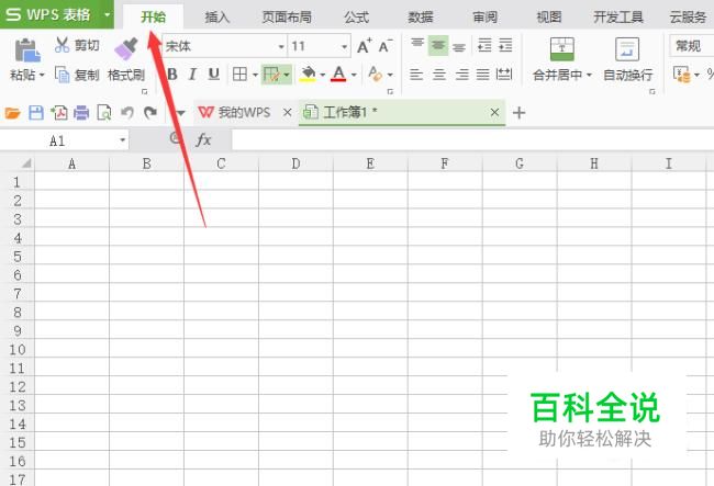 打开WPS表格,先点击工具菜单栏的开始。