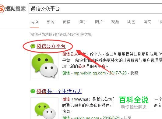 打开浏览器,搜狗搜索微信公众平台进入官网。