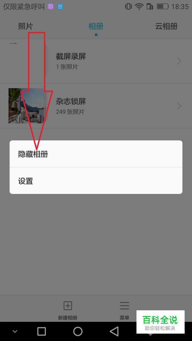 打开隐藏开关即可隐藏相册。如果要显示隐藏的相册还是点击菜单,在菜单中进入隐藏相册,将隐藏相册开关关闭即可。