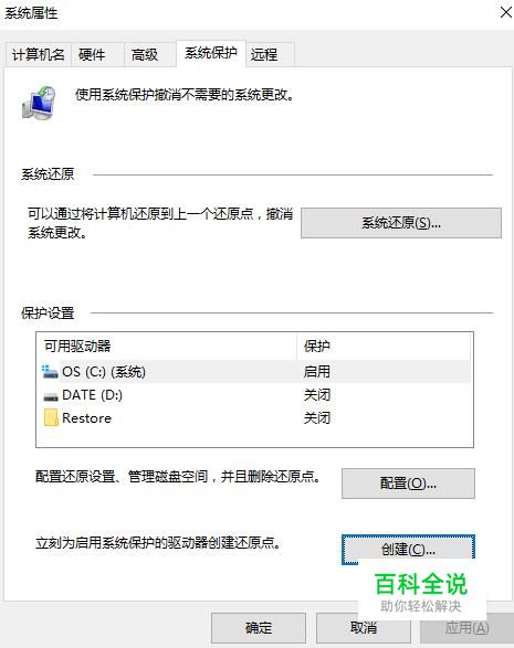 在“系统保护”中的系统还原中可以进行系统还原,但是在这之前,我们是需要创建还原点的。保护设置中有可用的驱动器。点击“配置”按钮。