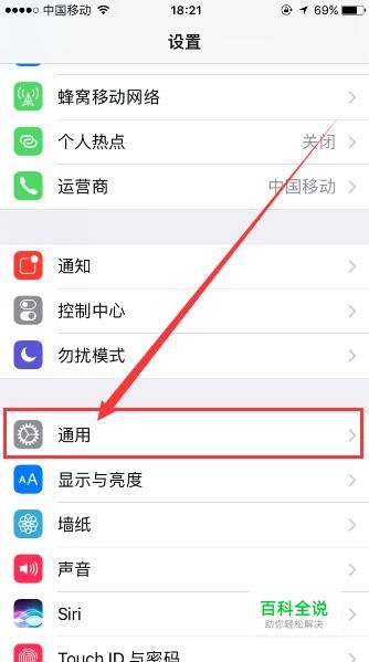 点击进入设置之后,我们来到了设置界面了,在设置界面里我们往下方找,找到“通用”选项。点击进入通用选项。