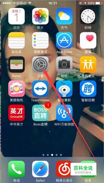 唤醒我们的手机,进入我们收集的桌面,在手机桌面上找到“设置”。点击进入设置。