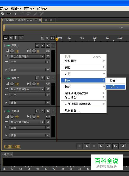 我们在第一条音轨里(音轨1),点击“右键-插入-文件”,如下图所示。